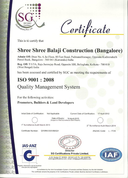 Shree Shree Balaji Construction (Bangalore) is known to offer superior quality real estate construction services in Kolkata and Bangalore.